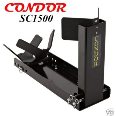 CONDOR Trailer/Lift Motorcycle Wheel Chock - Permanent Mount Model # SC1500 Made in the USA by Technical Components Development & Design, Inc. - An excellent quality, self supporting, motorcycle wheel chock from CONDOR PRODUCTS. This permanent mount version of the Condor SC2000 is identical minus the mounting brackets and more practical if you want to bolt directly to your trailer, or to mount on a motorcycle platform lift. If you want a wheel chock to double as a floor stand, then the original Condor PSTK 6400 is the correct choice to make. The adjustable locking mechanism (cradle) is virtually identical to the original, it holds the bike equally as well. It effortlessly and securely supports your motorcycle in an upright position on all transportation or lift platforms. Just push or ride your motorcycle into the CONDOR and you would have a difficult time pushing the bike over - it holds the motorcycle that well. Dismount and then tying down the bike is a quick and secure procedure for one person. You will be amazed at how secure and safe your trailer ride will be once tied down in the Condors' cradle. Two tiedown straps in the rear of the motorcycle pulling forward into the CONDOR is all that is needed. All the necessary hardware for installation is included (instructions included).